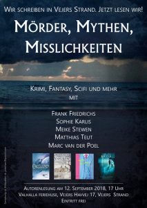 Im September lesen Sophie Karlis, Meike Stewen, Frank Friedrichs (Vertikow), Matthias Teut (Erellgorh) und ich auf unserem alljährlichen Schreibcamp in Dänemark – macht euch bereit für “Mörder, Mythen, Misslichkeiten”.